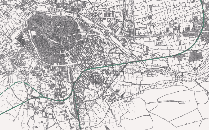 ¿Por qué no repensar un trazado que nunca debió descartarse al valorar las dos alternativas –enterramiento o desvío- al crecimiento de la ciudad? En 1974, desmantelada la estación de Aragón, se perdió la oportunidad de enterrar el tendido ferroviario por donde discurría en superficie; esta hipótesis parece, a día de hoy, constituir una opción para el Ministerio de Fomento a la travesía del centro histórico.
