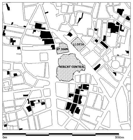 Qui transite amb atenció pels barris del Carme, el de Velluters o el del Mercat podrà vore solars, uns amb tanca i uns altres sense, que en alguns casos conformen buits urbans de grans dimensions i que produeixen un neguit inevitable. La sensació de trobar-se davant de restes d’un conflicte bèl·lic la tenen visitants, però qui coneix la ciutat sap que és conseqüència de la desídia i la cobdícia. A hores d’ara, entre solars i edificis en estat ruïnós o irrecuperable es poden comptabilitzar uns 550 casos pendents de reedificació, una proporció altíssima i insòlita per a un centre històric europeu. Mentre, alguns dels solars s’ocupen per pàrquings provisionals on els cotxes alcen núvols de pols i, en tots, hi ha brutícia més o menys permanent. Per posar un exemple només s’ha de visitar el rerafons de l’entorn de la Llotja, l’única arquitectura local declarada Patrimoni de la Humanitat: hi ha una collita de solars a l’espera de rendiments especulatius, alguns dels quals porten dècades així sense que l’Ajuntament, qui té mitjans legals per a fer-ho, haja obligat a la reedificació.